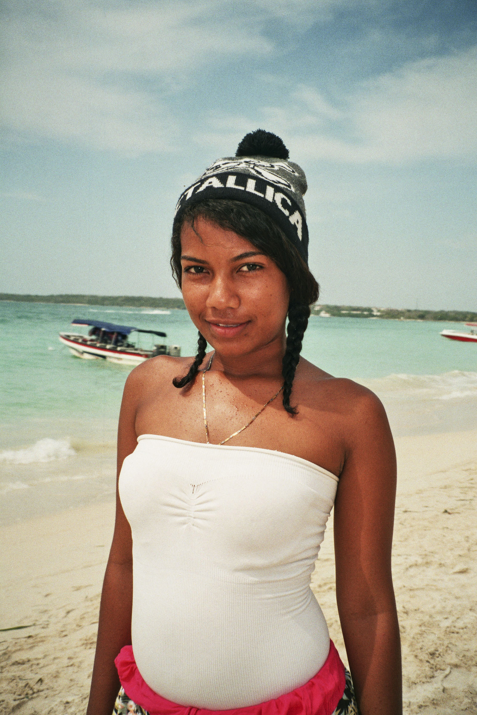 Baru Beach it’s a series of portraits I took during my travels in Colombia. While I was travelling on the coast I ended up in Playa Blanca in the Island of Baru, a crystaline water and white sand beach an hour from Cartagena. Reggeaton and Cumbia playing loud in bars, pretty men trying to persuade you with a boat ride, local women hanging around in group and responsible for giving massages, boys on water bikes and oysters vendors that would keep you entertain with their stories for hours and hours . It’s a funny and beautiful place characterised by the local people, despite being completely full and overrun with tourists complaining about the local people. If your read any travel forum online, all of the bad reviews talk about the uncomfortable ways that the the locals vendors address tourists. The truth is that these people are only looking to make money and of course they see visitors enjoying their holiday as an opportunity to bring food home.