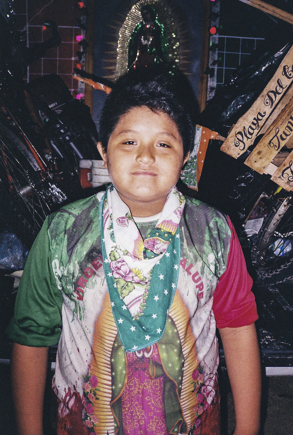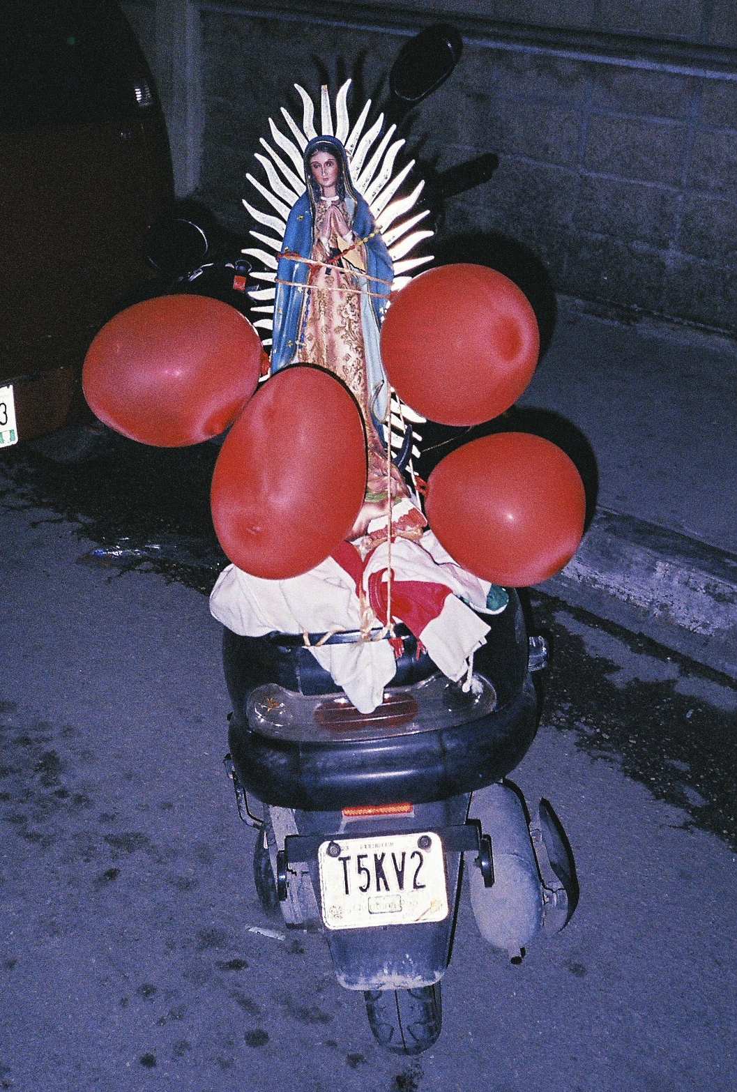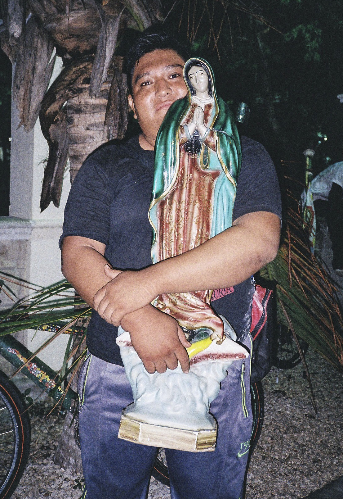 “Los guadalupanos" is a series of photographs I took during the Day of the Virgin of Guadalupe while I was living  in Tulum, Mexico.  Each year on the 9th of December, thousands of pilgrims travel all over the country to lay their eyes on La Virgen in Mexico City. This icon of the Virgin Mary is considered extremely holy by Mexican, who believe that she can perform miracles and answer the prayers of the faithful. One pilgrim had walked for about three weeks carrying a big sculpture of the Virgin, in order to deliver prayers that his sick daughter might recover.